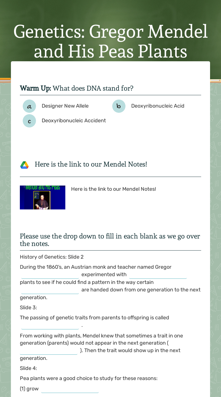 Mendel and his peas worksheet.