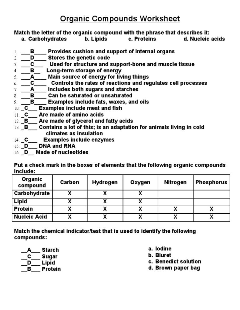 Compounds can be organic or inorganic. Organic molecules worksheet review answers macromolecule worksheet answer key and label and nutrition worksheet macromolecules are some main things we will present to you based on the gallery title. 1 2 1 short term energy storage structure cell walls exoskeletons monosaccharide glycogen chitin cellulose ...