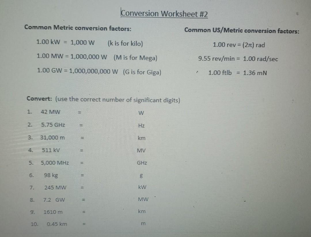 Metric Conversions Worksheet ... 2. Convert the following to metres (m):. Before. Move decimal to left or converting right? After converting.3 pages