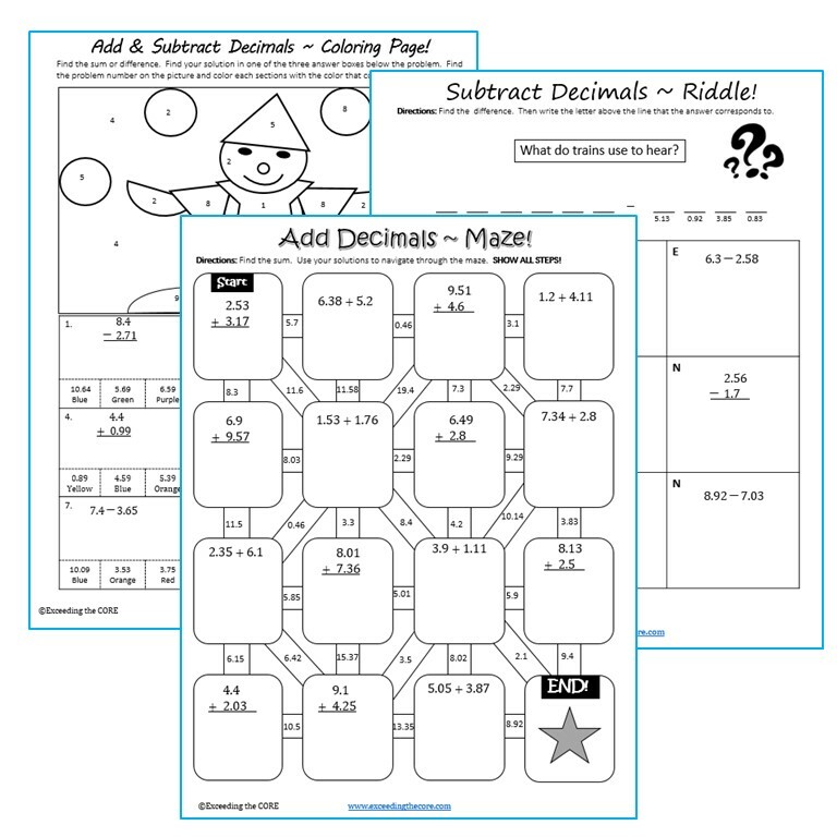 This Common Core-aligned math color by numbers for 5th-7th graders will have your students practice adding and subtracting decimals while coloring! Students complete the adding and subtracting decimals worksheets in order to color the corresponding picture correctly. This adding and subtracting deci Subjects: Adding and subtracting decimals coloring worksheet pdf ... Sheets Fall Division Coloring Sheets Fall Place Value Coloring Worksheets Fall Fractions Coloring Worksheets Fall Decimals Coloring Worksheets This bundle also include three bonus pictures for each of the math topics listed above. *** These are for Grades 2-6. Subtracting with Decimals- Penguin. Click on the image to view the PDF. Print the PDF to use the worksheet. Subtracting with Decimals- Penguin. Use your decimal computation skills to color the squares and reveal a pixel picture. Grab a piece of scratch paper, your crayons, and a pencil to enjoy this fun worksheet.