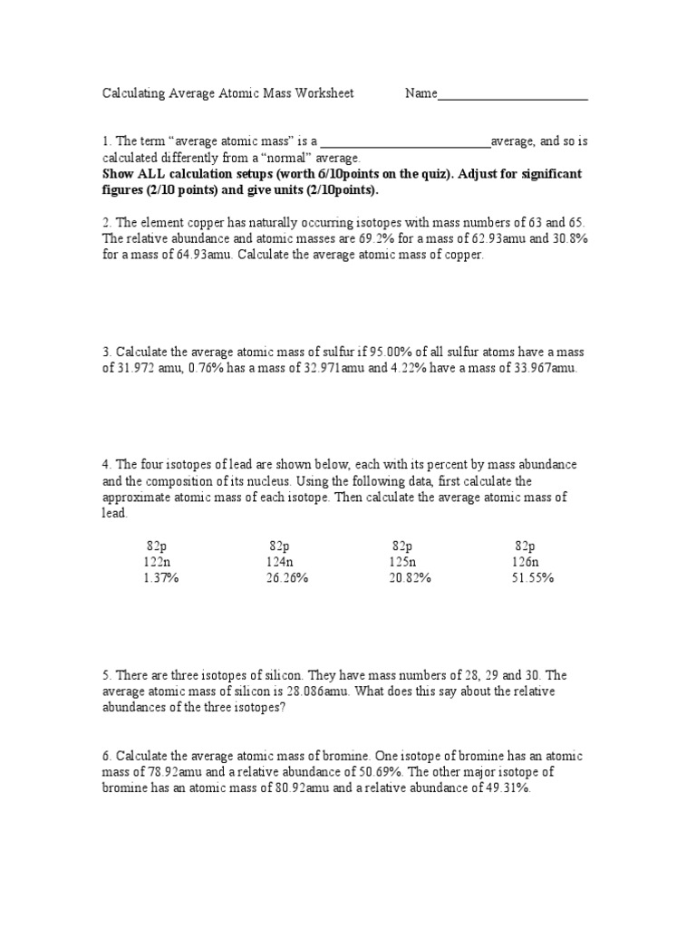 Average Atomic Mass Worksheet - Worksheets are obviously the spine to students getting to know and grasping principles taught by means of the teacher. Making your individual worksheets is easy, and it lets you include simply the right material that you desire to ensure your pupils can gain knowledge of and decide to memory.