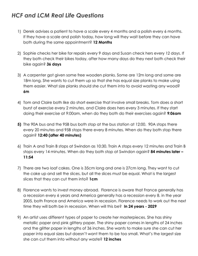 Math Hcf And Lcm Word Problem Worksheets - Printable Worksheets Some of the worksheets displayed are Gcf and lcm word problems 2, Multiples word problems involving, Word problems involving greatest common factor and Grade 5 Math Word Problems Worksheet. Read and answer each question. Show your work! GCF and LCM Word Problems #2.
