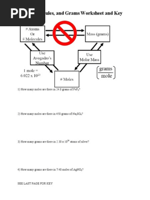 Moles, Molecules, and Grams Worksheet and Key - Kiddy Math Some of the worksheets for this concept are Mole to grams grams to moles conversions work, Mole calculation work, Gramsmoles calculations work i, Moles to grams conversions work answers, Mole calculation work, Mole work 1 answer key, Moles molecules and grams work and key...