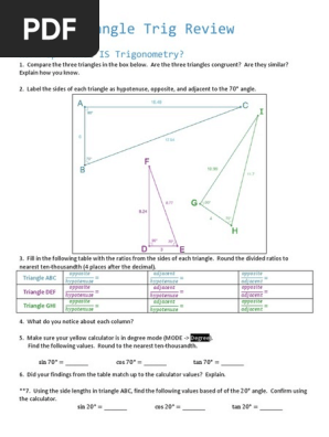 Worksheet Similar Triangles And Trigonometry Review Answers Right Triangle Trig Worksheet Answers. Investigating and classifying triangles grade 7 math learning goals classify triangles by their sides and angles scalene isosceles equilateral acute obtuse right. Trigonometry worksheets free worksheets with answer keys. Find the height of the goal post in feet.
