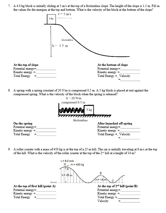 Conservation of energy worksheet answers