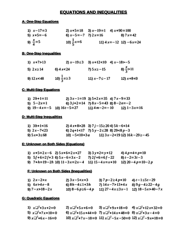 Equations And Inequalities Worksheet Answer Key ... Equations And Inequalities Worksheet Answer Key Inverse relationships are consisted of in straight equations worksheets. They can assist pupils in qualities 5- 8 a whole lot. You can choose worksheets that consist of one-step as well as two-step equations, integers, and also decimals.