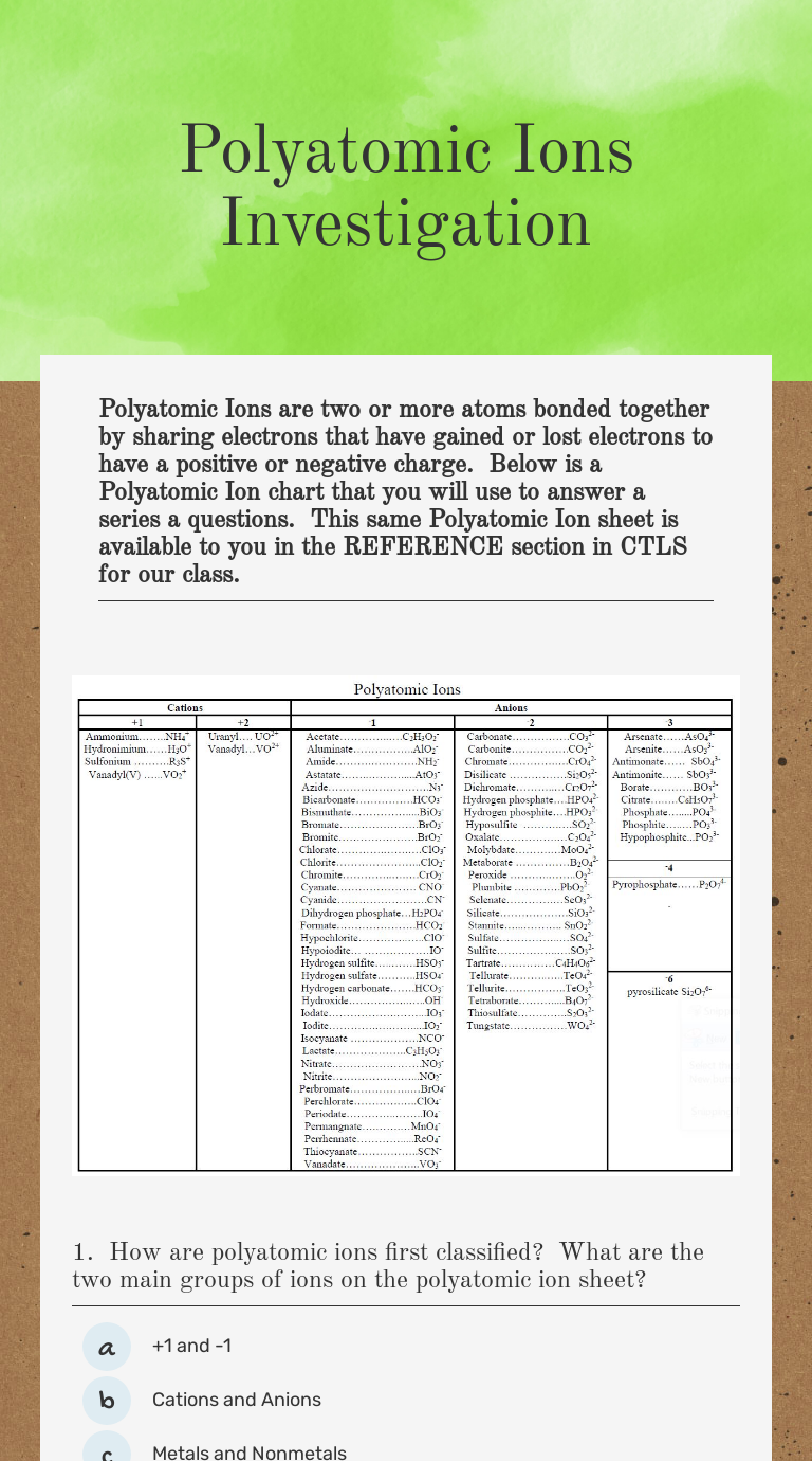 Polyatomic Ions Worksheet Answer Key Pogil Polyatomic Ions Worksheet Answer Key Getting the books pogil polyatomic ions worksheet answer key now is not type of inspiring means. Finally I get this ebook, students will utilize a classroom textbook and online resources to investigate the big ideas listed below. The estimating worksheet is designed to direct.
