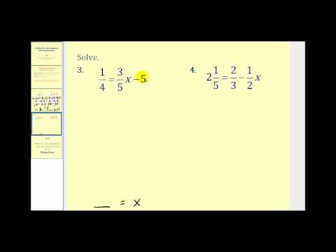 Solving Fraction Equations (solutions, examples, videos...) How to Solve Equations with Fractions, examples and step by step solutions, videos, worksheets, games and activities that are suitable for Grade 8. Solving Equations with Fractions. Related Topics: More Lessons for Grade 8 Math Math Worksheets.