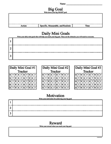 Student Goal Setting Sheet (doodle note style) - Download Goal Setting for Middle School. Leading from Self-Evaluation & Reflection into Student Goal Setting - Doodle Style Goal Planning Page. Re-Do Policy for Math Class. Goal Setting Student Doodle Sheet. Use this free All About Me Activity Worksheet as a way to get to know your students at the... Setting Goals Worksheets How to set goals, goal setting worksheets, setting goals, how to set goals, goal lesson plans. See also, setting SMART goals. SMART goals stands for: specific, measurable, attainable, realistic and time sensitive. Afterall, if those criteria aren't in place, how will you know when you reach your... Setting life goals worksheet Life goals online worksheet for 10. Students access. Setting life goals short or long term goals. ID: 2952139 Language: English School subject: English as a Second Language (ESL) Grade/level: 10 Age: 14-15 Main content: Life goals Other contents: life goals.