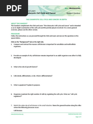 (Pdf) the Eukaryotic Cell Cycle and Cancer: an Overview ... THE EUKARYOTIC CELL CYCLE AND CANCER: AN OVERVIEW ABOUT THIS WORKSHEET This worksheet complements the Click and Learn "The Eukaryotic Cell Cycle and Cancer" and is intended as a straightforward introduction to the cell cycle and how that relates to cancer.