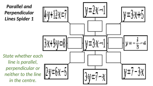 Finding Parallel and Perpendicular Lines Games. Puzzles. Worksheets. Parallel and Perpendicular Lines. Find the equation of the line that is: parallel to y = 2x + 1. and passes though the point (5,4). In fact they are the same line and so are not parallel. Perpendicular Lines.