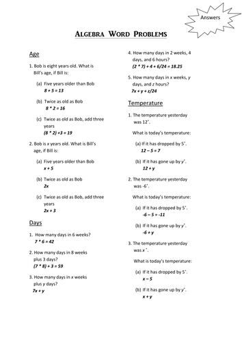 Algebra Word Problems Worksheets Students begin to work with Algebra Word Problems in a series of math worksheets, lessons, and homework. A quiz and full answer keys are also How to Approach Algebra Word Problems - There are many questions in mathematics that scare us or seem really tough. But there is this one thing that...