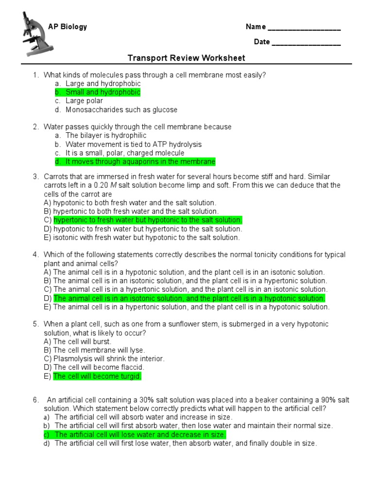 Cell transport review worksheet