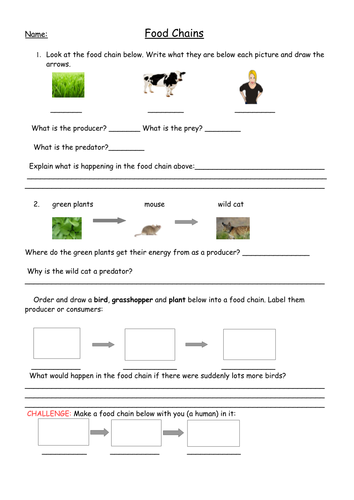 Food Webs and Food Chains Worksheet | Teaching Resources A worksheet I have created which provides a comprehensive test of pupils understanding of food webs and food chains. Subject: Biology. Age range: 11-14. Resource type: Worksheet/Activity.