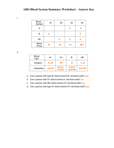 ABO Blood Types Worksheet Worksheet for 7th - 12th Grade - Lesson Planet ABO Blood Types Worksheet Blood types and transfusions are explained in reading passages at the top of the activity. A chart of blood type compatibility is also provided. Biology students answer comprehension questions and then exercise critical-thinking skills to apply what they have learned to different scenarios. PDF Codominance Worksheet Blood Types - crestwoodschools.org Created Date: 11/23/2015 1:30:10 PM Blood Typing Worksheet Answers - Worksheet Answer Key Blood Typing Worksheet Answers - Every moms and dad wishes for his/her kid to be able to communicate efficiently in English. To do this, you should have superb command of the language's grammar. Needing to learn the 8 words and also expressions is the very first step in a child's trip toward grasping grammar. Abo Rh Simulated Blood Typing Worksheet Answers Some of the worksheets for this concept are blood types work genetics of blood types cloze work abo blood types work answers genetics of the abo blood groups written by hendrix middle high school teachers guide human blood type testing for abo and rh factors standards simulated blood typing whodunit.
