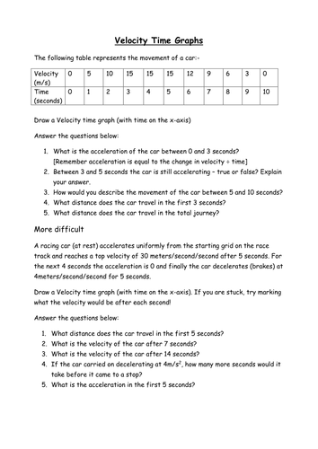 graph time distance velocity acceleration worksheet - Google Search | 5th Math | Pinterest ...