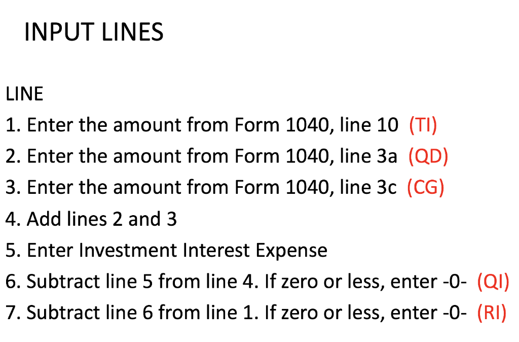Qualified dividends and capital gain tax worksheet calculator. Qualified Dividends and Capital Gain Tax | ESSAY RIDGE (1) Write the code to display a blank "Qualified Dividends and CapitalGain Tax Worksheet" to Console screen. (See EXHIBIT C2) (2) Develop a Function that implements the "Qualified Dividends andCapital Gain Tax Worksheet". This function should populate the inputfields {1,2,3} from EXHIBIT A2, the Individual Income Tax Return.Then Calculate and Populate the Intermediate Fields {4-16} Estimated Income Tax Spreadsheet - Mike Sandrik I built the capital gains tax formulas by directly implementing the steps in the IRS' Qualified Dividends and Capital Gains Tax Worksheet. 0% bracket = MIN (B19,H51) -MIN (B20,MIN (B19,H51)) 15% bracket = MIN (MAX (MIN (B19,H52) - (B20+J51),0), (B21-J51)) 20% bracket =B21 - (J51+J52) Why doesn't the tax on my return (line 16) match the Tax ... When you have qualified dividends or capital gains, you do not use the tax table. Instead, you will need to use the Capital Gains Worksheet to figure your tax. 1040 Instructions Line 16 , Qualified Dividends and Capital Gains Worksheet. The program has already made this calculation for you. 2022 Capital Gains Tax Calculator - See What You'll Owe According to the IRS, net investment income includes interest, dividends, capital gains, rental income, royalty income, non-qualified annuities, income from ...