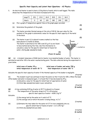 Calculate Specific Heat Capacity Worksheet - EdPlace Specific Heat Capacity = 900 J/kg o C. Temperature change = 0 - 100 . 3 Oh no! There is a temperature change, so work out what the difference is (super hard right?) Mass = 4 kg. Specific Heat Capacity = 900 J/kg o C. Temperature change = 100 - 0 = 100 o C . 4 Finally, write them into the equation, put the numbers in the calculator and press =