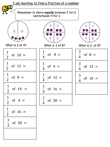 Fraction of a number worksheet. Fractions On a Number Line Worksheets | Download Free PDFs A number line is a representation of numbers in a series in increasing order, starting from the lowest. Benefits of Fractions on a Number Line Worksheets. These worksheets will help students to understand the plotting of fractions on a number line. These worksheets also deal with comparing and ordering different types of fractions, thus forming ... Fractions Of Whole Numbers Worksheets | Printable Online PDFs These math worksheets should be practiced regularly and are free to download in PDF formats. Fractions of a Whole Worksheet - 1. Download PDF. Fractions of a Whole Worksheet - 2. Download PDF. Fractions of a Whole Worksheet - 3. Download PDF. Fractions of a Whole Worksheet - 4. Download PDF. Grade 5 Math Worksheets: Multiplying fractions by whole numbers | K5 ... Below are six versions of our grade 5 math worksheet where students are asked to find the product of whole numbers and proper fractions. These worksheets are pdf files. Open PDF. Worksheet #1 Worksheet #2 Worksheet #3 Worksheet #4 Worksheet #5 Worksheet #6. 5 More. Fractions Worksheets - Math-Drills Understanding fractions worksheets including modeling fractions, ratio and proportion, comparing, ordering, simplifying and converting fractions. ... It becomes a little more difficult when both numbers are fractions, but it isn't a giant leap to figure it out. 1/2 ÷ 1/4 is a fairly easy example, especially if you think in terms of U.S. or ...