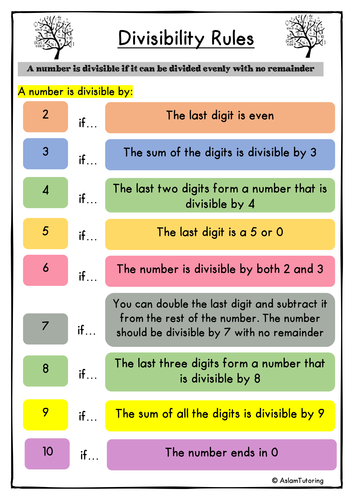 PDF Divisibility Rules Worksheet - effinghamschools.com This rule is similar to the divisibility rule for three. 9243 is divisible by nine because the sum of the digits adds up to eighteen, which is a multiple of nine Ten (10) A number is divisible by ten if it ends in a zero. This rule is similar to the divisibility rule for five. 730 is divisible by ten because it ends in zero