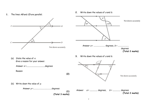 Triangle angle sum - Math Worksheet Find the measure of each angle indicated. This free worksheet contains 10 assignments each with 24 questions with answers. Example of one question: