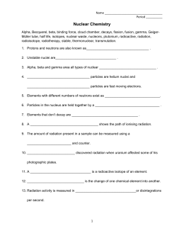 PDF Chapter 25 nuclear chemistry worksheet answers Chapter 25 nuclear chemistry worksheet answers The atomic theory in the nineteenth century assumed that the nuclei had fixed compositions. But in 1896, the French scientist Henri Becquerel discovered that a uranium compound place near a photographic plate has an image on the plate, even though the compound was wrapped in black cloth.