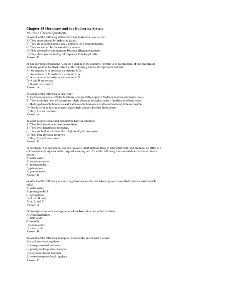 Endocrine System - Answer Key - Ch. 16 - The Endocrine System - ANSWER ... Ch. 16 - The Endocrine System - ANSWER KEY. True/False. The endocrine system works with the nervous system by responding quickly to stimuli in the body. FALSE. The endocrine system responds slowly to stimuli by using hormones as its communicator, which travel in blood and lymph. Multiple Choice.