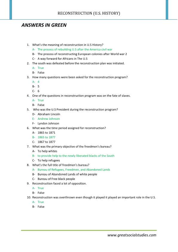 Civil war and reconstruction worksheet answers