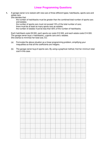 Linear programming problems worksheet