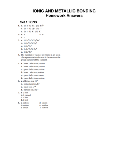 Chapter 7 Ionic And Metallic Bonding Worksheet Answers Ionic And Metallic Bonding - Lake Central High School - Yumpu assign problems 1, 3-5, 7-12, 14, 15, 18-20. Essential Understanding Ions form when atoms gain or lose valence electrons, becoming. electrically charged.