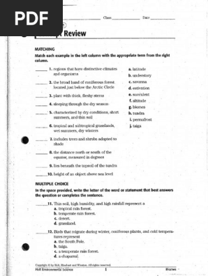 Skills worksheet concept review answer key holt environmental science