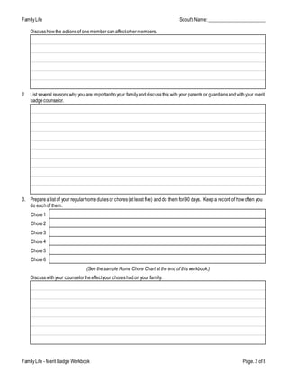 Family Life - Merit Badge Workbook - U.S. Scouting Service Project Merit Badge Counselors may not require the use of this or any similar workbooks. No one may add or subtract from the official requirements found in Scouts BSA ...