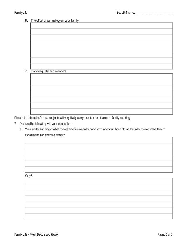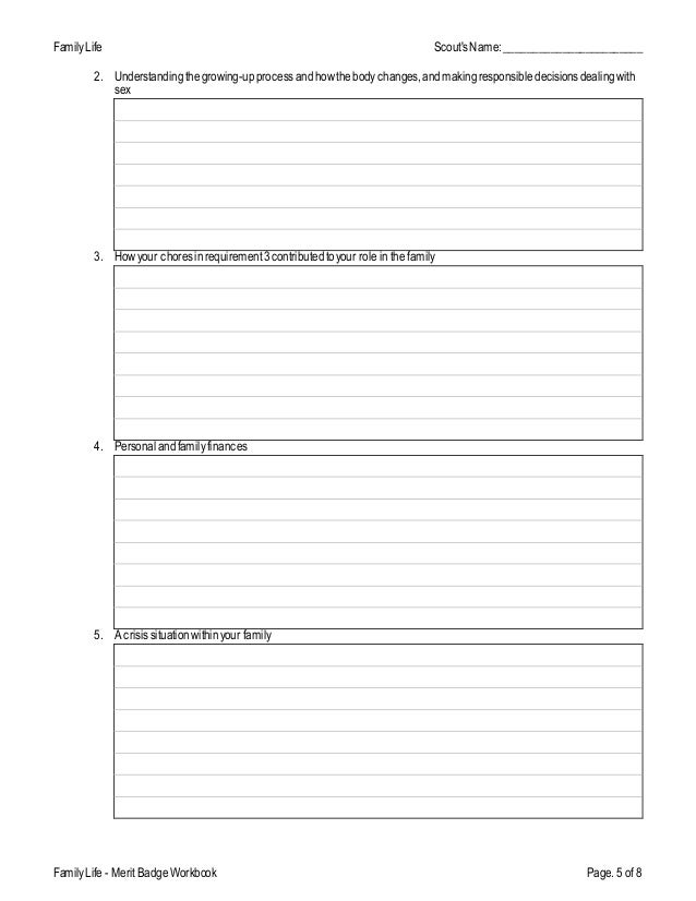 Boy scout family life merit badge worksheet