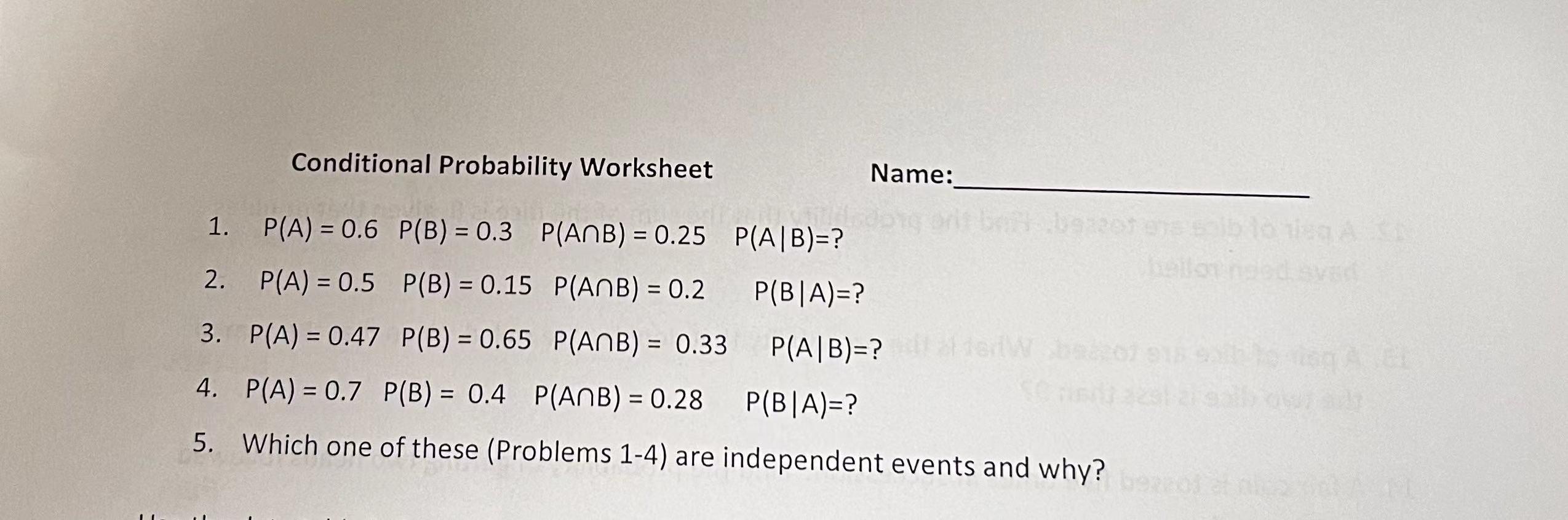 conditional probability and independence worksheet How To Find Experimental Probability Of An Event. 16 Pictures about How To Find Experimental Probability Of An Event : Conditional Probability Independent Practice Worksheet, 37 Conditional Probability Independent Practice Worksheet Answers and also Conditional Probability Independent Practice Worksheet.