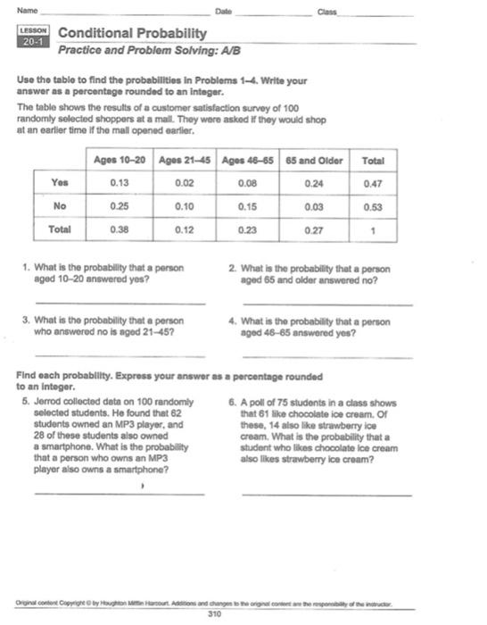 Conditional Probability Worksheets With Answers Pdf Conditional probability practice worksheet answer key pdf This is a really fun worksheet that can be used to solve three problems as a class. If clauses - worksheet. ... Conditional Probability - Independent Practice Worksheet Complete all the problems. Conditional probability worksheets with answers pdf. Exercises 7-10 use the data in the ...