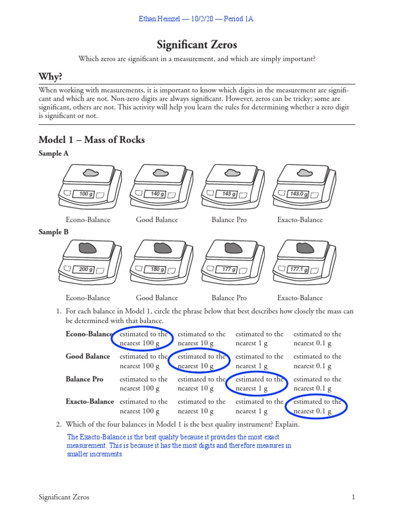 Significant digits and measurement worksheet answers