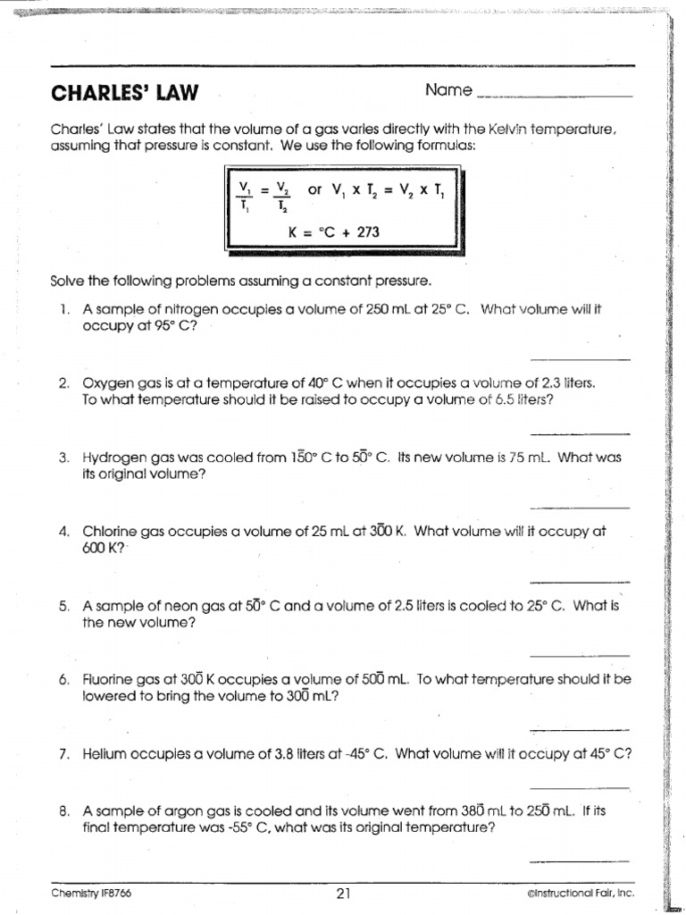 38 charles law problems worksheet answers