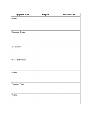 Chemistry Equipment Worksheet Teaching Resources | TpT The Chemistry Lab Equipment Differentiated Graphic Organizer in Worksheet and Foldable Styles (Digital and Printable) focuses on laboratory equipment students will use the chemistry lab. Both styles complement distance, hybrid, and traditional learning. The resource can be printed on paper or filled out digitally online.