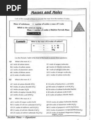 Worksheet for Basic Stoichiometry - Winston … Worksheet for Basic Stoichiometry. Part 1: Mole ←→ Mass Conversions. Convert the following number of moles of chemical into its corresponding mass in grams. 1. 0.436 moles of ammonium chloride. 2. 2.360 moles of lead (II) oxide. 3. 0.031 moles of aluminum iodide. 4. 1.077 moles of magnesium phosphate. 5. 0.50 moles of calcium nitrate Moles And Mass Worksheet Answers - odl.it.utsa.edu Moles and Molar Mass The mole is the "counting unit" used by chemists to indicate the number of atoms, ions, ... Solutions to the Molar Mass Practice Worksheet: Important note to students: All of the units given here are "grams per mole", which may ... All answers are rounded to the nearest 0.1 grams. 1) 102.9 g/mol 2) 303.3 g/mol CHEMISTRY ... moles to moles worksheet Mass worksheet molar practice 9th grade reviewer lessonplanet rating GCSE Moles Calculations: Practising Different types of Question. 16 Pics about GCSE Moles Calculations: Practising Different types of Question : Chapter 3: The Mole Worksheet, 18 Best Images of Mole Conversion Problems Worksheet Answers - Mole and also 18 Best Images of Mole ...