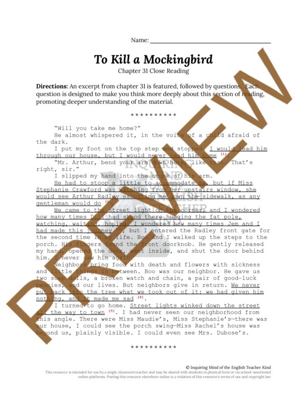 To kill a mockingbird worksheet