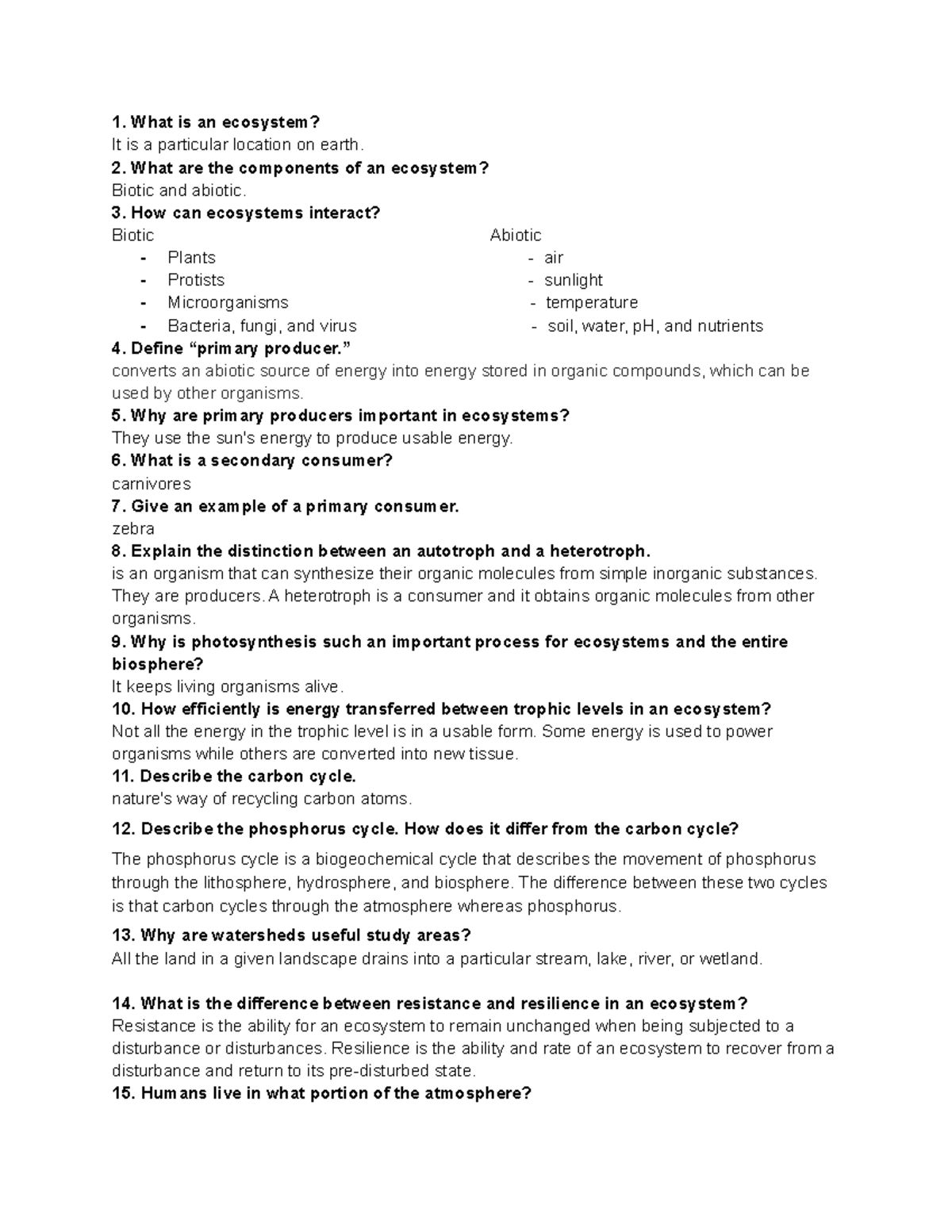 Chapter 2 Principles Of Ecology Worksheet Answers [PDF] - www ... Ecology review worksheet 1 pdf answer key Chapter 2 Principles Of Ecology Worksheet Answers Or Ecosystem. . 1. Organism Anything with all of the characteristics of life. Deer 2. Population The amount of one species that live in an area # of deer 3. Community All of the different species that live in an area People + dogs + deer 4. Ecosystem ...
