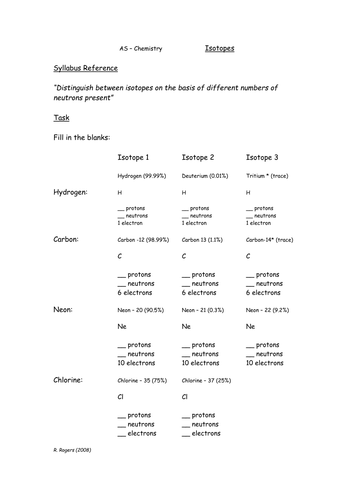 Isotope Practice Worksheet Answers - Edu Stiemars This worksheet is greatest fitted to eighth grade science. Chlorine consists of two isotopes with plenty of 35 (abundance 75%) and 37 (abundance of 25%). Calculate the relative atomic mass of strontium. Contents [ hide] 1 Isotopes Of A Component Differ In _____ 1.1 Protons, Neutrons, & Electrons Self 1.2 Extra Ions Interactive Worksheets
