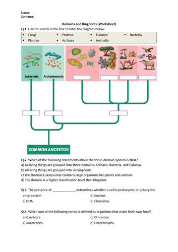 domains and kingdoms worksheet answers Domains And Kingdoms Worksheet Answers - Worksheet List nofisunthi.blogspot.com. organizer classification kingdoms eukarya organizers. 50 Enzyme Review Worksheet Answers | Chessmuseum Template Library chessmuseum.org. enzyme. Bacteria domain cladogram archaea draw simple which common following chegg visualize rela illustrating solved. Domains ... Domains and Kingdoms - Worksheet | Printable and Distance Learning - TES docx, 800.66 KB. pdf, 773.08 KB. docx, 808.83 KB. txt, 94 Bytes. This worksheet is the perfect way for helping your students learn and review Domains and Kingdoms. In this worksheet, students will answer questions about the following terms: Bacteria. Archaea. Eukarya. Kingdom and Domain Characteristics Worksheet Flashcards - Quizlet what kingdom is it when the domain = eukarya. protista (fungae) (plantea) (animalia) cell structure= cell walls without peptidoglycan. archaebacteria. cell structure= cell walls with peptidoglycan. eubacteria. cell structure= some have cell walls and others do not. protista. cell structure= cell wall of chitin. kingdoms and domains worksheet Chpt. 17.3- Domains and Kingdoms. 8 Images about Chpt. 17.3- Domains and Kingdoms : Domains & Kingdoms Classification Worksheet | TpT, Domains And Kingdoms Worksheet Answers and also The Six Kingdoms and Three Domains of Life - Test - Two Versions Editable. Chpt. 17.3- Domains And Kingdoms . chpt fungi