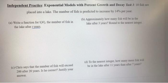 Exponential Growth and Decay: Graph, Formula, Examples - US Learn Mar 24, 2022 · The exponential growth and decay worksheet answers three questions for every exponential growth and decay problems – does this function represent exponential growth and decay, what is your initial value, and what is the growth rate or decay rate for the given problem. If these answers are known, then you can master any exponential growth and ...