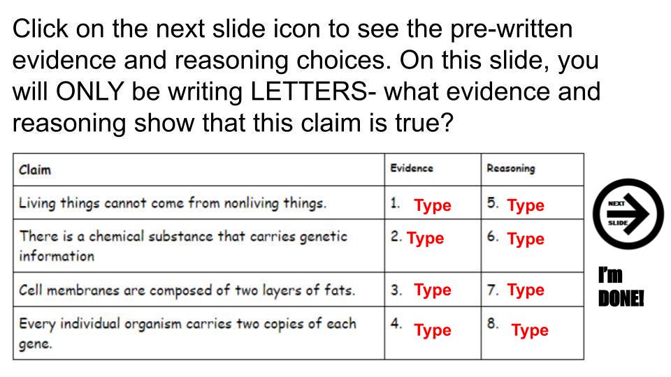 claim evidence reasoning - Teaching Science with Lynda R. Williams The claim-evidence-reasoning comes in when students are asked to form a conclusion.This conclusion should be based on evidence such as lab work, research, readings and more. CER A claim that answers a question Evidence from students' data Reasoning that supports a scientific principle with examples as evidence My Favorite Lesson Plan for Teaching Claim, Evidence, and Reasoning ... Claims, Evidence, and Reasoning Introduction Lesson Plan. Mini-Lesson: Explain the analogy. Work-time: Act it Out as Students Make Arguments. Extension: Have Students Act it Out for Each Other. Twist: Invert the Lesson. Reinforce it Throughout the Unit. assignmentessays.comAssignment Essays - Best Custom Writing Services Get 24⁄7 customer support help when you place a homework help service order with us. We will guide you on how to place your essay help, proofreading and editing your draft – fixing the grammar, spelling, or formatting of your paper easily and cheaply. FREE Claim Evidence Reasoning Resource for Middle School Science FREE Claim Evidence Reasoning Resource. CER for Middle School. Join my newsletter and get this amazing resource! Get freebies, teaching tips, and more delivered to your inbox. Slide Show on CER. 21 practice pages for Claim Evidence Reasoning. Claim Evidence Reasoning for Middle School Science.