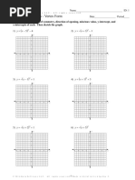 PDF Practice Worksheet: Graphing Quadratic Functions in Vertex Form Practice Worksheet: Graphing Quadratic Functions in Vertex Form For # 1 -6, label the axis of symmetry, vertex, y intercept, and at least three more points on the graph. 1]