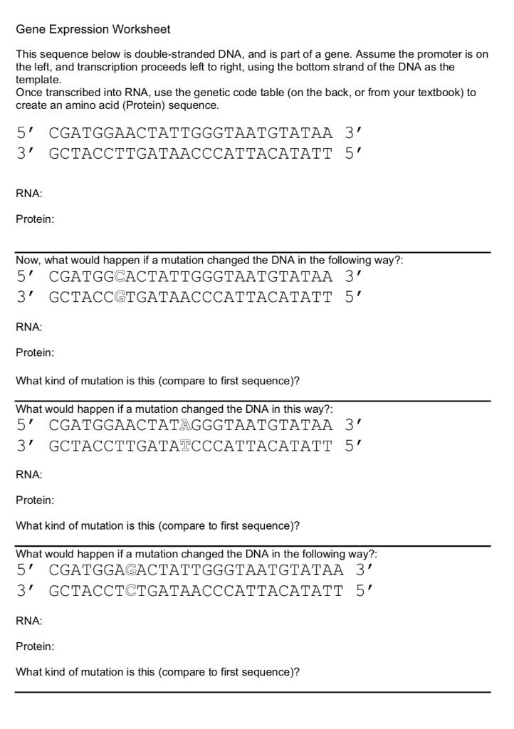 Rna and gene expression worksheet answers