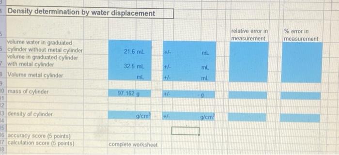 Water Displacement Worksheet Teaching Resources | TPT - TeachersPayTeachers Water Displacement Method Worksheet: Measuring the Volume of Irregular Objects. by. Elly Thorsen. 4.5. (2) $2.25. PDF. This two page worksheet about the water displacement method can introduce, assess, or reinforce how to measure the volume of an irregularly shaped object using water in a graduated cylinder.