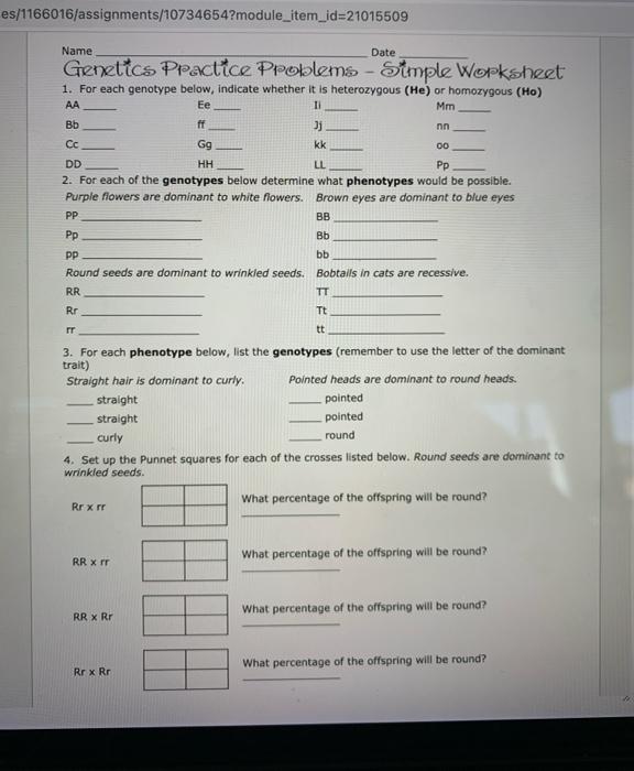 Genetics Practice Problems Worksheet Answer Key Simple Genetics Practice Problems 1. Human pedigree genetics worksheet answer key 2. For each genotype below, indicate whether it is heterozygous (he) or homozygous (ho) 1. Worksheet will open in a new window. Simple Genetics Answer Key [Epub] 4. For each of the genotypes below, determine the phenotype.