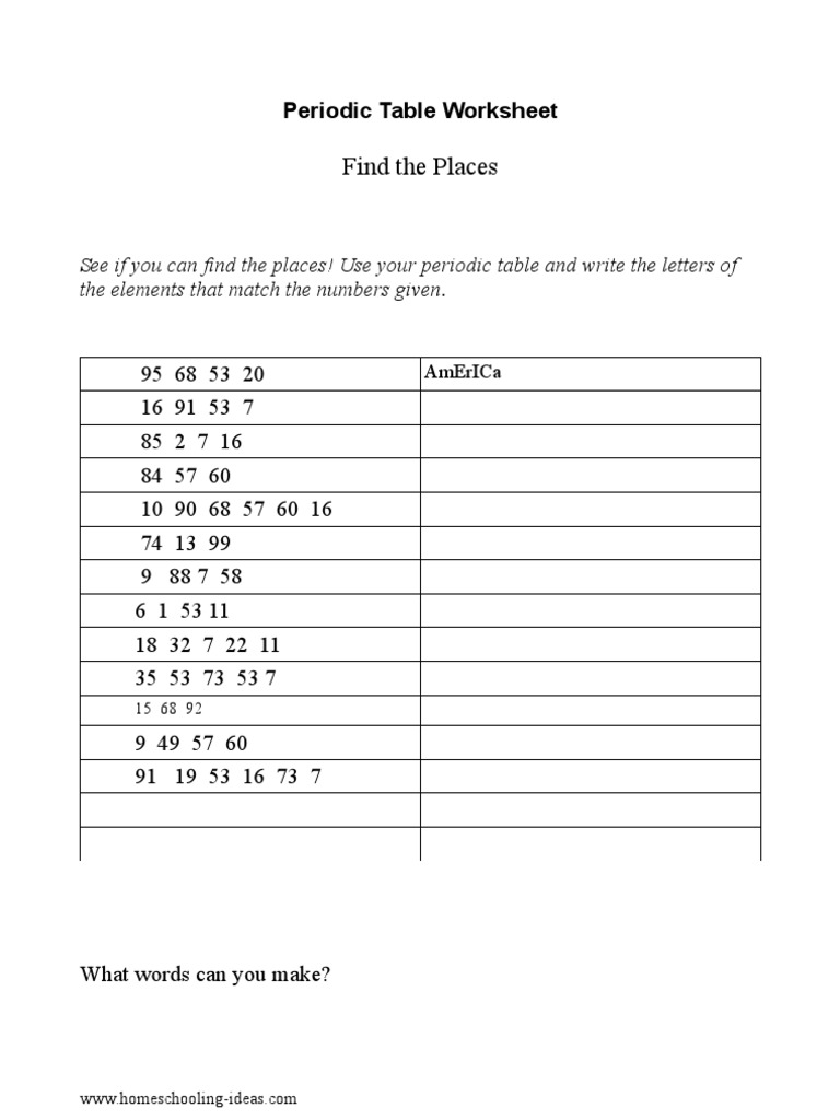FREE Printable Periodic Table of Elements Science Worksheets Apr 22, 2022 · Children will love learning about the periodic table and the elements that are listed on it with these free printable periodic table worksheet pages! Using these periodic table of elements worksheets studnets in 3rd grade, 4th grade, 4th grade, 6th grade, 7th grade, 8th grade, 9th grade, 10th grade, 11th grade, and 12 grade will enjoy learning about different elements and their symbols.